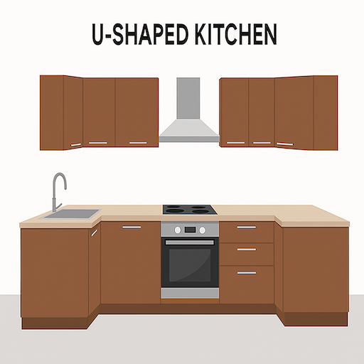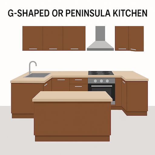 Layout: Similar to U-shaped but includes an attached peninsula or “island arm.”