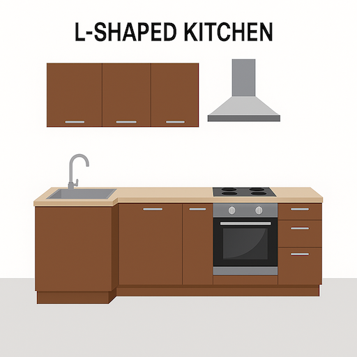 Layout: Cabinets and countertops are arranged along two adjoining walls forming an “L”.