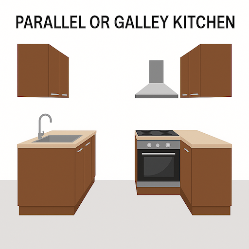 Features: Efficient work triangle, open layout, allows space for dining or movement.