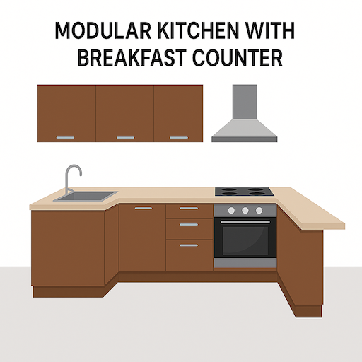 Layout: Any base design (L, U, or parallel) with an extended counter for casual dining.
