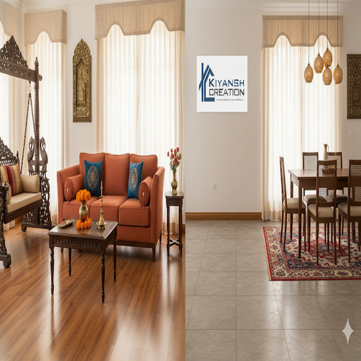 Kiyansh Creation’s premium PVC and wooden flooring that combines comfort and elegance, creating a cozy atmosphere in every room. Whether you prefer the classic appeal of natural wood or the modern versatility of PVC, our collection offers a range of styles and finishes to reflect your taste and lifestyle. Experience how beautifully crafted flooring enhances your interior design and adds value to your home while providing a delightful walking experience.