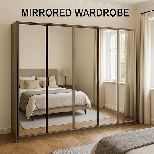Features: Smooth glide mechanism, mirrored panels, modern look.